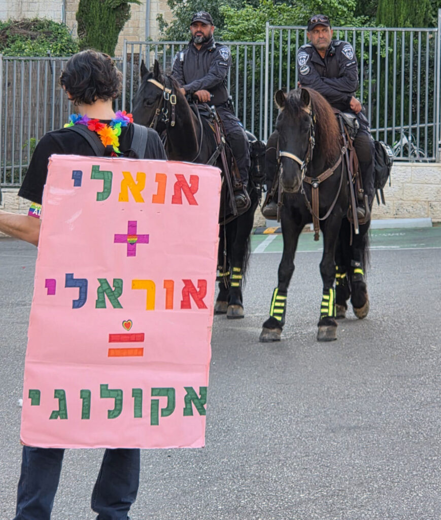 And violating animals’ rights is what made such a wonderful event, in so many ways, terribly sad in my view. There were horses at the event. I didn’t expect it so I didn’t bring signs with me against the use of horses by the police. But I did stand next to them with Liyha’s sign, while I documented them. It was a good exposure to the suffering of the horses, and to animal rights in general, because many of the parade participants saw it, and I hope it made them see the horses, standing there in the heat, for hours, with people on their backs, not understanding what the hell they were doing there. I don’t understand either. They shouldn’t be there. There is no pride in exploiting horses. Enough with the horsemen!