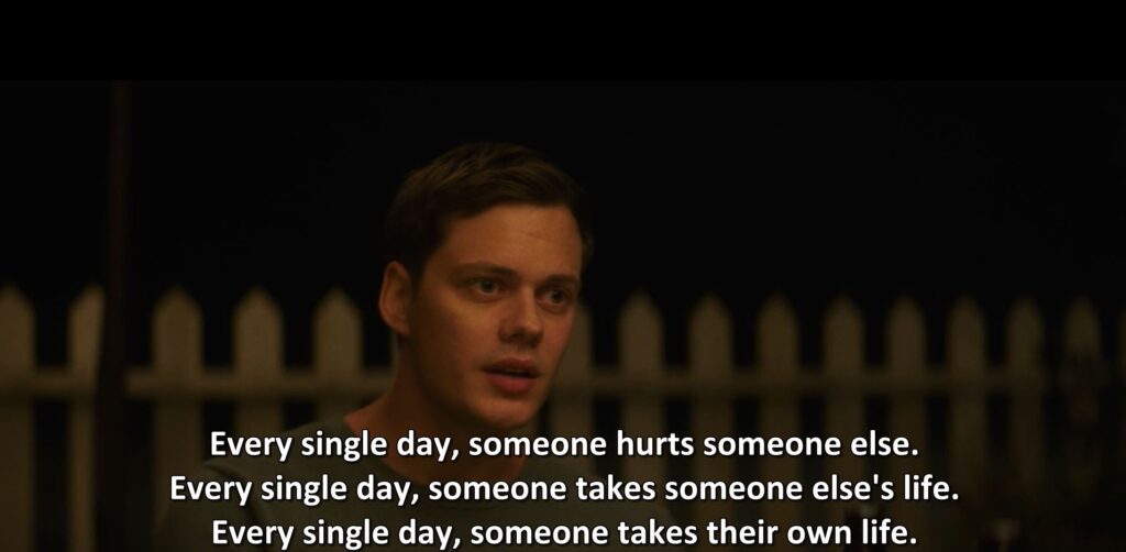 What does it say about life that someone as gentle, humble, and conscientious as Mike, who as Will attests to as a good “soul” is not a good fit? And what does it say about life that choosing (supposedly) whether to exist or not “has nothing to do with good or bad”?