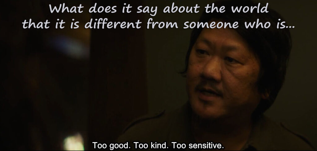 Like in the case of Mike, what does it say about life that someone who is too good, too kind, too sensitive like Will, doesn’t fit? What does it say about the world that it is different from someone who is “Too good. Too kind. Too sensitive”?